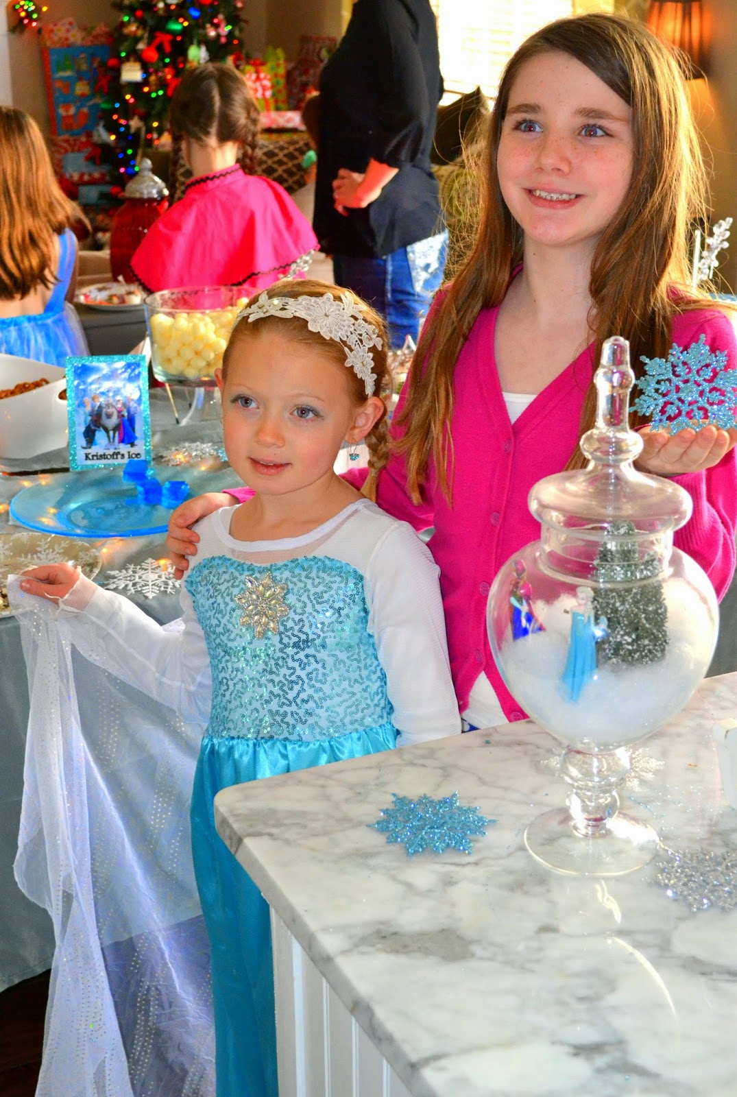My daughter and I began planning this party before we even left the theater after seeing the movie “Frozen” for the first time. Is there anything more magical to a 7-year-old than a princess with the power to build her own ice castle with just a wave of her hand? Luckily, my daughter’s birthday is in December, so we had some leftover costumes from Halloween. And since every other girl in America dressed as Anna or Elsa for Halloween, I suggested in the invitation that guests dress up as their favorite Frozen character for the party. I’ve never seen so many princesses in my life… the little girl in me was jumping up and down with excitement!